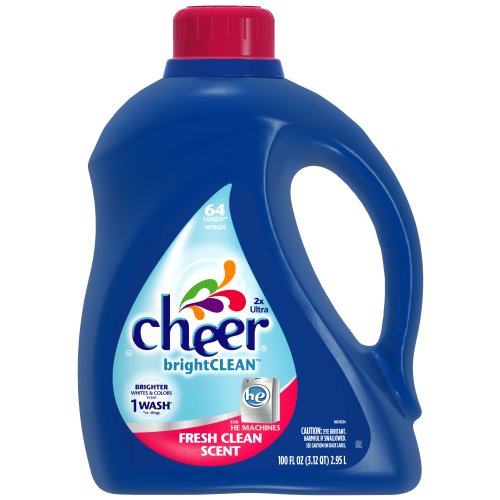 Cheer HE 2x Concentrated Liquid has more active ingredients in every drop, so you can use less. Now one small cap can get a whole load clean. Plus you get the same number of loads in a smaller, more convenient bottle. Our new 2x formula contains less water, which means we can use a smaller bottle and less plastic, which is better for the environment. Using traditional detergent in a HE (High Efficiency) washer can cause excess suds. Excess suds could lead to washer problems. And just using a smaller dose won't solve the problem. Cheer HE is a special low-sudsing formula. Only the use of a HE detergent ensures the proper performance of your washer. Since HE washers use less water to clean, the water is dirtier. Cheer HE has special dirt capturing ingredients to suspend dirt and dyes in the water, which helps keep them from re-depositing on your clean laundry. 100 fluid ounces per bottle. Made in USA.Cheap "Cheer HE 2x Concentrated Liquid Detergent, Bright Clean, 64-Load Bottle (Pack of 4) Fresh Clean Scent" Discount Review Shop