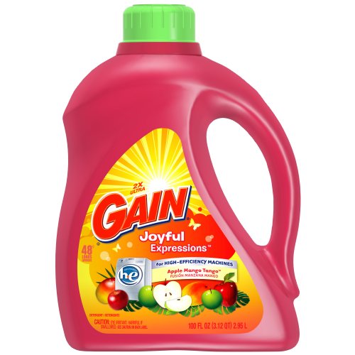 "Gain 2X Ultra Gain Liquid Joyful Expressions Apple Mango Tango HE 48 Load, 100.0-Ounce Bottles (Pack of 4)" Feature