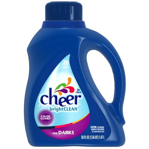 2x Ultra Cheer brightCLEAN Dark - More Vibrant Colors. Cheer Dark Colorguard contains chlorine scavengers and takes color cleaning to the next level. Its formula helps preserve colors, while giving your clothes advanced Cheer brightCLEAN! ***vs. Regular Cheer Liquid after 30 cycles. Brighten Your Life One Load At A Time